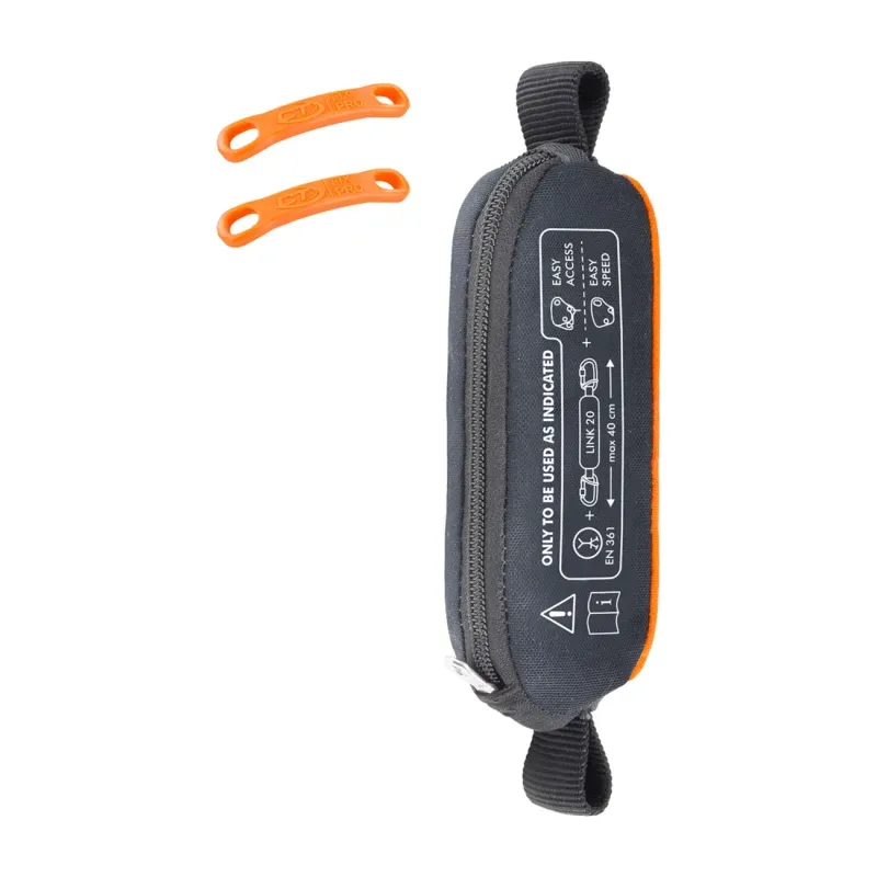 El LINK 20 es un accesorio desarrollado exclusivamente para su uso conjunto con los dispositivos EASY ACCESS y EASY SPEED, sin considerarse un equipo de protección individual (EPI) por sí solo. Su función principal es mejorar la movilidad del usuario durante el guiado de la cuerda, gracias a su diseño con funda con cremallera que protege el elemento de amarre del desgaste y permite inspecciones visuales rápidas. Incluye dos soportes de posicionamiento FIX PRO que previenen torsiones y cargas laterales en el eje secundario. Tiene una longitud de 20 cm, no cuenta con indicador de caída ni es apto para bordes, y está fabricado en poliéster con una vida útil máxima de 12 años. Soporta temperaturas entre -35 °C y 45 °C y está disponible en colores negro y naranja.