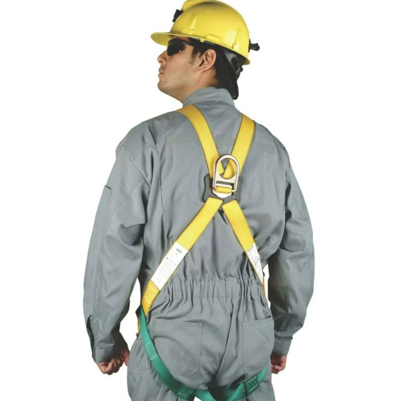 Arnés anticaída de cuerpo completo. Estilo chaleco, con sistema de restricción o posicionamiento para el usuario. Una sola argolla en la espalda y dos argollas en la cintura, utilizadas para amarrarse y permitir así mantener las manos libres, o para restringir la exposición a bordes donde existe riesgo de caída. Ajuste por hebillas a fricción. Peso: 1300 gr.
