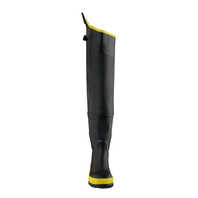 Bota para trabajo duro en diversas industrias, en especial la minería. Fácil de poner y quitar, con puntera de acero que reduce significativamente la presión sobre los pies. La plantilla anti perforación incorporada ofrece una excelente estabilidad y durabilidad, mientras que el caucho 100% impermeable mantiene los pies secos en condiciones de humedad extrema. Estas botas están diseñadas y fabricadas para lograr alta resistencia en ambientes de trabajo donde se precise proteger al pie del agua, principalmente en faenas mineras donde la