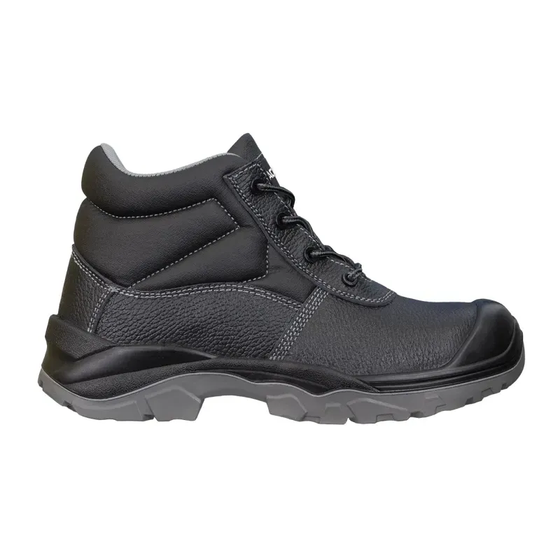 El botín de seguridad Strong ST433 está diseñado para ofrecer máxima protección, durabilidad y confort en faenas de alta exigencia. Confeccionado en cuero negro grabado de 1,8 a 2,2 mm de espesor y suela de poliuretano bidensidad, este modelo brinda una excelente resistencia al desgarro, tracción y abrasión. Incorpora puntera de composite con diseño amplio (Confort Toe Cap) y plantilla textil antiperforante, ideal para trabajos que requieren protección adicional. Cuenta con aislamiento eléctrico hasta 600V (ASTM EH), resistencia a hidrocarburos (FO), suela antideslizante (SR) y absorción de impacto en el talón. Certificado bajo normas EN ISO 20345:2022+A1:2024 (SB PL SR FO) y ASTM F2413 M/I/C EH PR, es una opción robusta para construcción, labores agrícolas, aseo industrial y más.