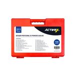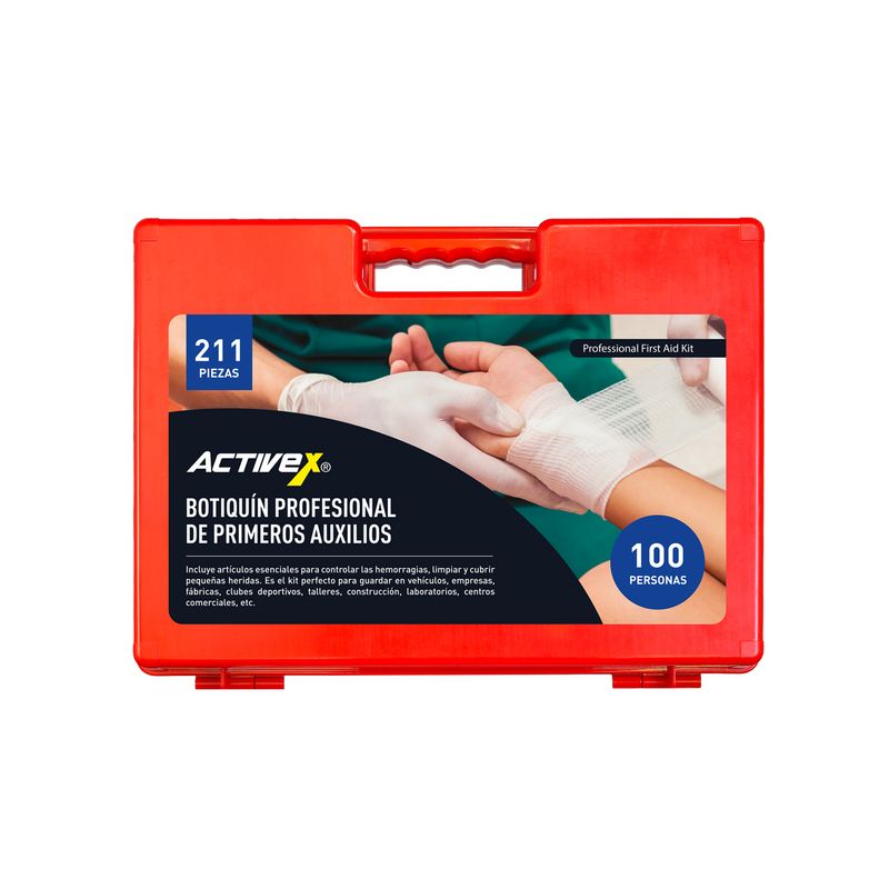 materiales de curación y elementos básicos de emergencia, tales como vendas, gasas, alcohol, parches adhesivos, tijeras, guantes, termómetro y otros insumos. Permite atender desde cortes y quemaduras menores hasta situaciones que requieren contención inmediata mientras se espera atención médica profesional.