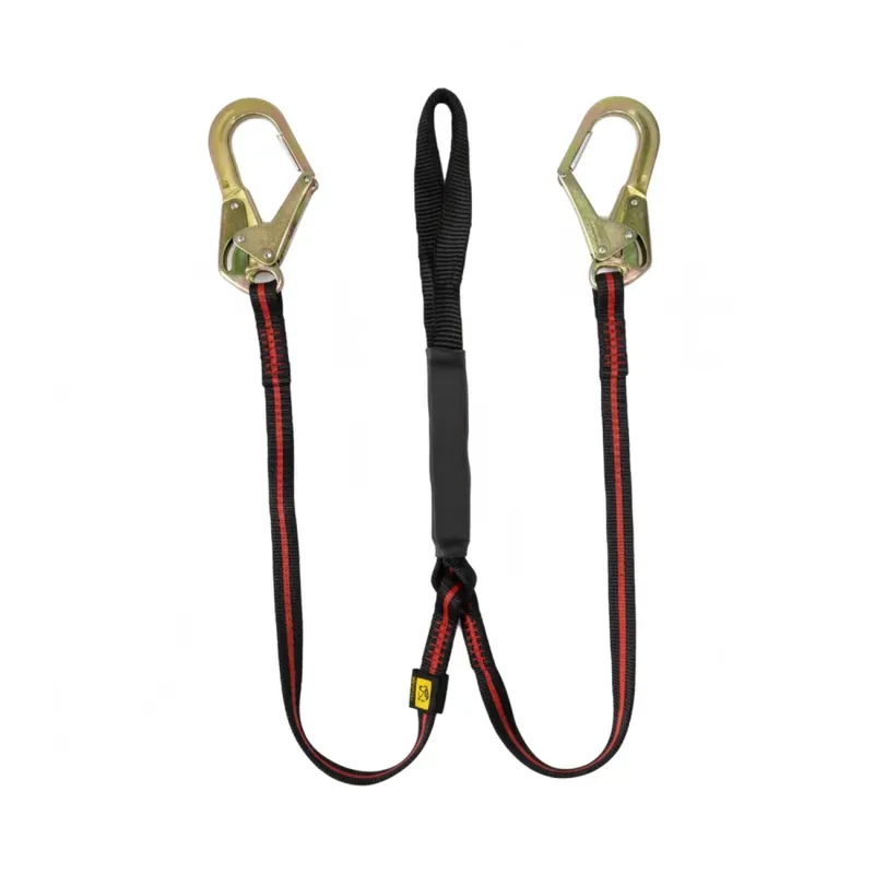 Eslinga de seguridad doble de 1,8 metros con amortiguador y gancho grande de escala, diseñada para trabajos en altura y ambientes eléctricos con riesgo de arco eléctrico. Fabricada con materiales de alta resistencia, esta eslinga cuenta con certificación ASTM F887 y normas ABNT NBR 14629 y 15834. Incorpora un absorbedor de energía que reduce el impacto en caso de caída, y posee dos ganchos de acero galvanizado con apertura de 55 mm para un anclaje seguro. Su conexión al arnés se realiza mediante un loop de cinta en para-aramida Kevlar® Nomex®, resistente al calor y con propiedades aislantes. Soporta una capacidad de peso entre 59 y 140 kg, con una elongación máxima de 1,65 m y una fuerza máxima de 4 kN. Ideal para labores de detención de caídas, posicionamiento, restricción, rescate y trabajo en espacios confinados