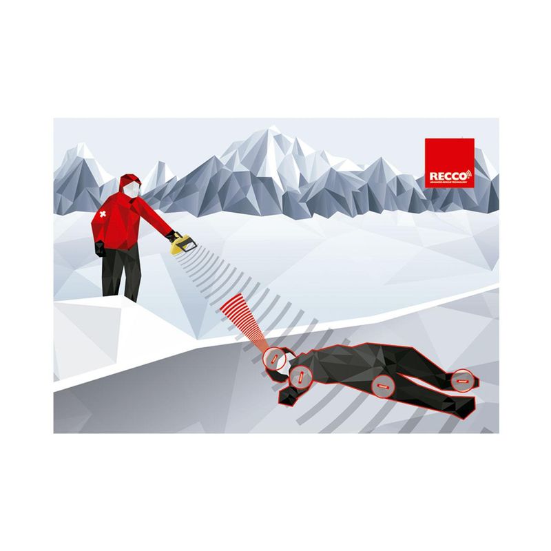 RECCO® es un sistema de rescate con tecnología direccional permite una rápida identificación de una víctima de la ubicación precisa utilizando radar armónico. Las dos partes del sistema consiste en un detector de RECCO® utilizado por grupos organizados de rescate, y RECCO® REFLECTOR que se han integrado en prendas de vestir, cascos, equipo de protección o botas. El reflector es adherido permanentemente, no requiere de capacitación para su uso y no necesita pilas para funcionar. El reflector consiste en un pequeño transpondedor electrónico de apenas cuatro gramos de peso con una fina antena de cobre y un diodo que rebota la señal del detector y duplica la frecuencia. Va recubierto de una lámina exterior protectora de goma que le da su conocida forma alargada de pastilla. Es prácticamente indestructible. El reflector no emite señal y por tanto no requiere de una fuente de energía.