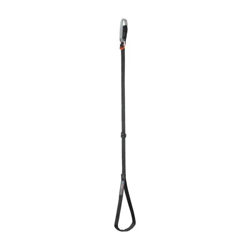 El STAND UP es un lazo de pie flexible diseñado para adaptarse cómodamente a diferentes estaturas, siendo especialmente útil para personas altas. Su amplia abertura facilita un apoyo seguro y rápido del pie, mientras que su empuñadura integrada permite un agarre firme con la mano libre al ascender, incluso cuando no se utiliza un bloqueador como el GET UP. Es apto para elevar personas y ofrece una resistencia mínima de 15 kN. Tiene una vida útil de hasta 10 años, no incluye indicador de caída, no es apto para bordes, y resiste temperaturas entre -35 °C y 45 °C. Su longitud es de 1,70 m y está fabricado con poliamida y aluminio.
