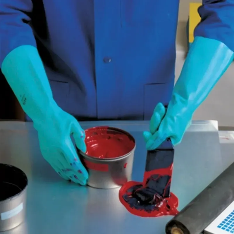 Vida de servicio optimizada: excelente resistencia mecánica (abrasión, perforación). Excelente protección durante las manipulaciones intensivas de productos químicos de alto riesgo. Buena prensión de objetos resbaladizos, gracias al relieve antideslizante. Para uso en industria automovilística/mecánica(tratamiento/desengrasado de metales con disolventes agresivo), mantenimiento,tratamiento y acabado de la madera, aplicación de pesticidas,limpieza de rodillos de presión/impresión, Industria química (manipulación de barriles de productos químicos).