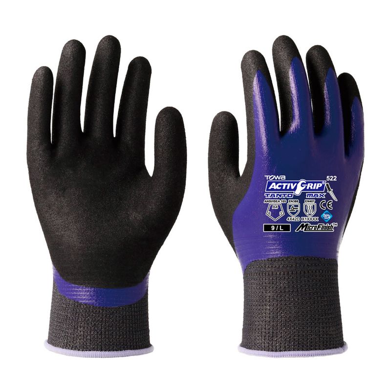 Guante TOWA TANTO MAX 522 Anticorte Nivel D: Doble Nitrilo con MicroFinish®, Protección 360° contra Líquidos y Alta Destreza 18G