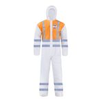 Buzo desechable tipo 5/6 con cintas reflectantes de 2" según norma NCh 3524:2011 e ISO 20471:2013, ideal para proteger al usuario de partículas sólidas en suspensión, salpicaduras ligeras de líquidos y procesos contaminantes. Fabricado con materiales antiestáticos (EN 1149-5:2018), cuenta con puños tejidos elasticados, cintura y gorro ajustables, cierre doble con cubre cierre adhesivo y entrepierna reforzada para máxima comodidad y seguridad. Cumple con normas EN 13034:2005+A1:2009 (tipo 6), EN ISO 13982-1:2004+A1:2010 (tipo 5) y EN 14325:2004, lo que lo convierte en una prenda esencial para industrias como minería, cementeras, pulpa y papel, mantenimiento mecánico y pintura.