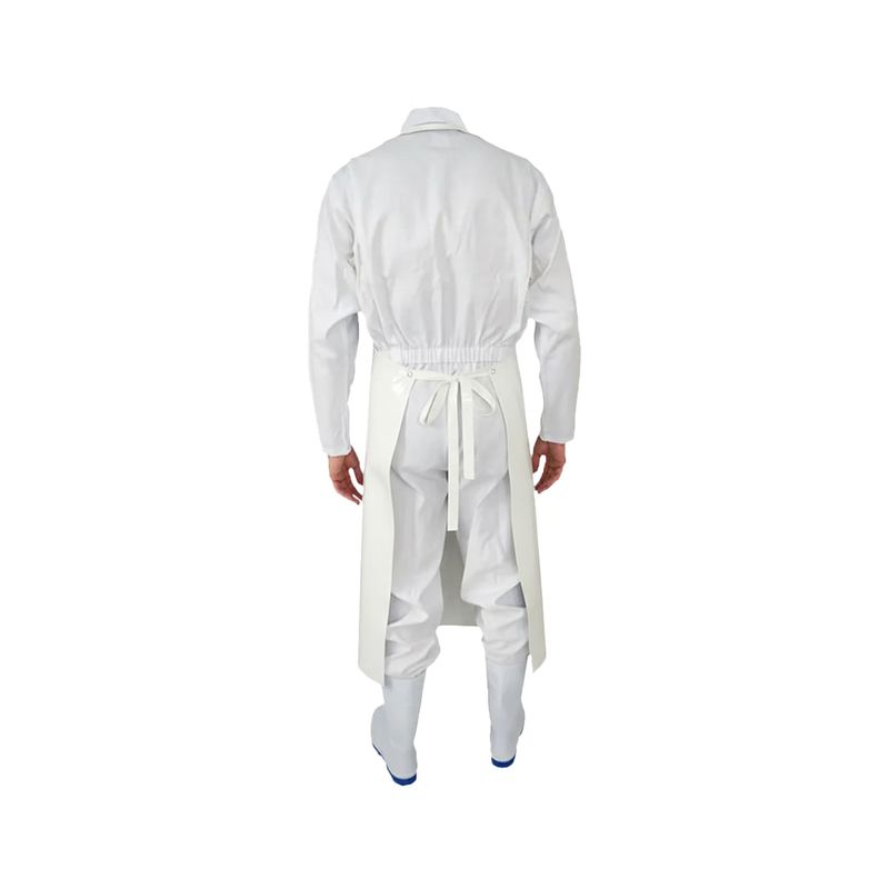 100% poliuretano, esta pechera combina flexibilidad, resistencia a productos químicos y una superficie lisa que facilita la limpieza y desinfección. Su composición sin costuras garantiza mayor durabilidad frente al desgaste diario y a los lavados constantes.