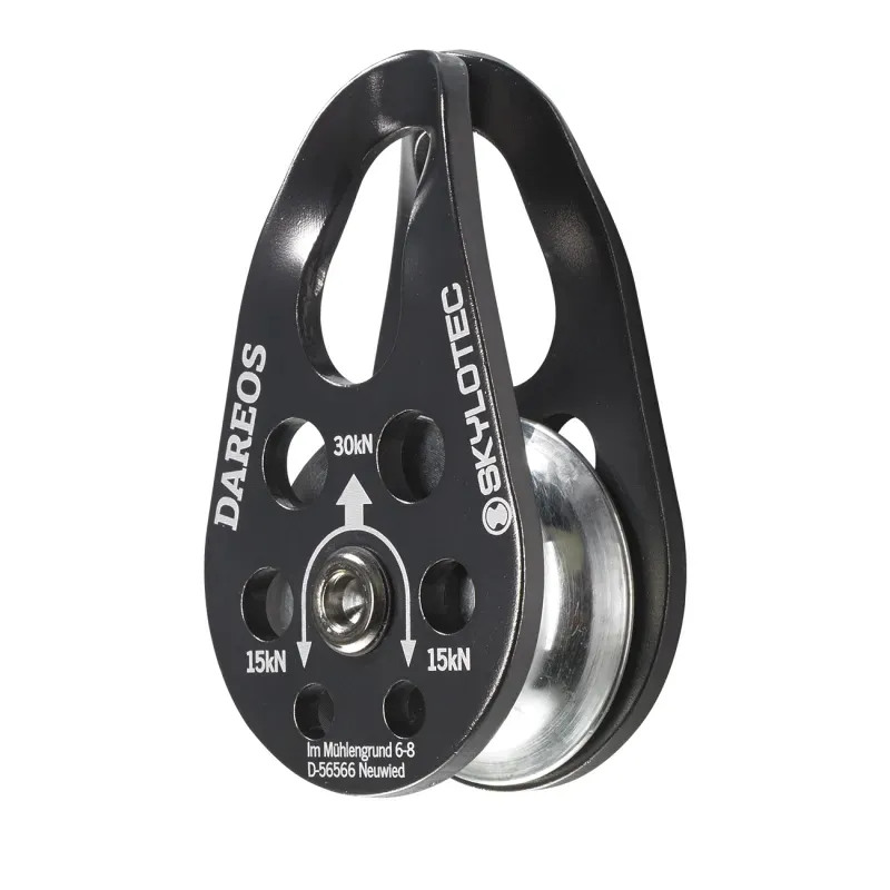 La polea DAREOS de Skylotec es una polea de cuerda compacta, diseñada para aplicaciones de peso ligero que requieren eficiencia sin comprometer resistencia. Su principal ventaja es la posibilidad de fijar dos mosquetones superpuestos en su abertura de anclaje, lo que permite una gran versatilidad en configuraciones de carga o rescate. Fabricada con aluminio y acero inoxidable, soporta temperaturas de trabajo desde -20 °C hasta 60 °C, y cuenta con una vida útil máxima de 30 años. Cumple con la norma EN 12278:2007 y presenta un diseño robusto en color gris con un peso neto de 0,22 kg.