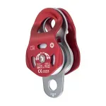 La polea doble ORBITER T de Skylotec está diseñada para sistemas de izado y desviación de cargas, ofreciendo alta eficiencia y versatilidad. Fabricada en aleación ligera anodizada, incorpora roldanas montadas sobre rodamientos de bolas para un rendimiento óptimo (96% de eficiencia). Permite el uso de cuerdas de hasta 13 mm de diámetro y cuenta con placas laterales móviles que facilitan la inserción de tres conectores en el orificio superior y uno en el inferior. Tiene un punto de enganche adicional y una capacidad de carga de hasta 50 kN (12 kN de carga de trabajo). Es compatible con temperaturas entre -30 °C y 40 °C, y tiene una vida útil máxima de 30 años.