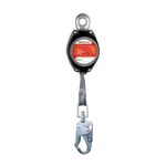 Retráctil Anticaídas de recuperación automática del accidentado. El conector incorporado en el retráctil se engancha directamente a la argolla dorsal del arnés. El usuario está sujeto al retráctil por medio de una cinta de alta resistencia 2,1 mts. cuya longitud se extiende y se enrolla automáticamente. Al producirse una caída se bloquea automáticamente la cinta y en caso de que el impacto es muy fuerte, actúa inmediatamente un absorbedor de impacto. Para ser utilizado en labores de bodegaje, torres de telecomunicaciones, montajes, etc.